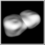 Asteroid 4769 Castalia is a near-Earth crossing asteroid that was discovered by Eleanor F. Helin (Caltech) on August 9, 1989. Scientists used radio astronomy and computer modeling to generate this image of Castalia. They obtained the data for the computer model in 1989 using the Arecibo radar/radio telescope in Puerto Rico when the asteroid passed within 5.6 million kilometers (3.5 million miles) of the Earth. R. Scott Hudson (Washington State University) and Steven J. Ostro (JPL) used the detailed time-delay and Doppler data from the radio echos to produce this 3D computer model.