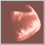 Deimos [DEE-mos] (panic) is a moon of Mars and was named after an attendant of the Roman war god Mars. Deimos is a dark body that appears to be composed of C-type surface materials. It is similar to the C-type (blackish carbonaceous chondrite) asteroids that exist in the outer asteroid belt. Some scientists speculate that Deimos and Phobos (the other martian moon), are captured asteroids; however, other scientists present arguments counter to this theory. Both Deimos and Phobos are saturated with craters. Deimos has a smoother appearance caused by partial filling of some of its craters.