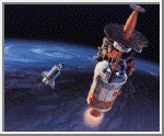 This artist's concept depicts the Inertial Upper Stage booster rocket