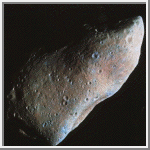 shows Gaspra in approximately true color; the surface is covered with