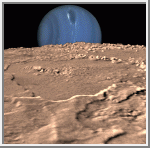 terrain at the upper left. Triton's surface is mostly covered by nitrogen